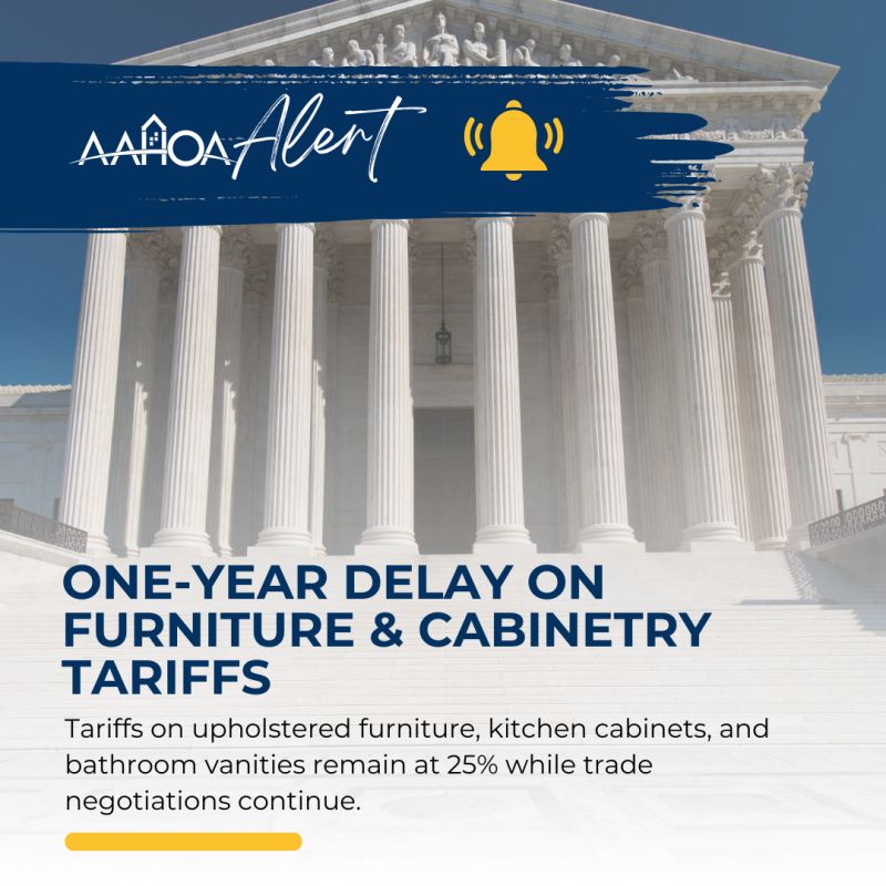 AAHOA Applauds One-Year Delay of Tariff Increases on Furniture and Cabinetry